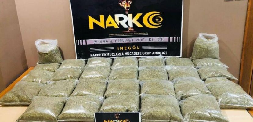 İnegöl’de çöp konteynerinden 28 kilogram uyuşturucu çıktı.