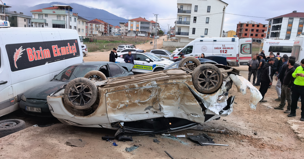 Savrulan otomobil, oto yıkama iş yerinin önünde park halinde bulunan 16 AFH 829 plakalı otomobil, 16 BTF 434 plakalı otomobil ve 34 SR 6914 plakalı minibüse çarptı. Çarpmanın etkisiyle ters dönen otomobilde sürücü Ali B. ile yolcu konumundaki Sergen B. (14), İsmail Ş. (16), Efe D. (15), Bilal A. (15), Enes T. (16) ve Muhammed Ali D. (16) araç içerisinde sıkışarak yaralandı.