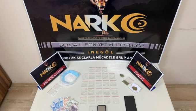 Araç ve şahsın üzerinde yapılan aramada; 76 gram metamfetamin maddesi, uyuşturucu madde ticaretinden kazanıldığı değerlendirilen 375 TL, 3,85 gram bonzai, hassas terazi ve 23 adet uyuşturucu madde paketlemede kullanılan şeffaf kilitli poşet ele geçirildi.