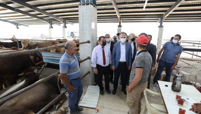 Yeni hayvan pazarı ziyareti sırasında kurban kesimi de yapıldı.
